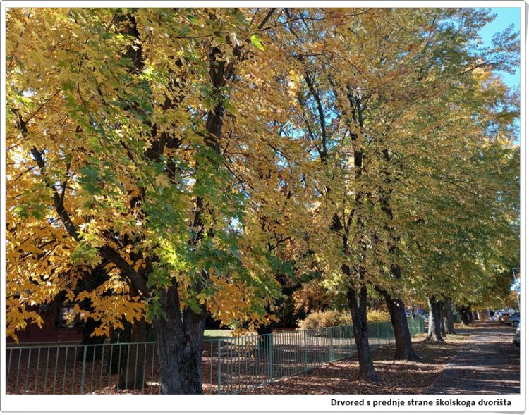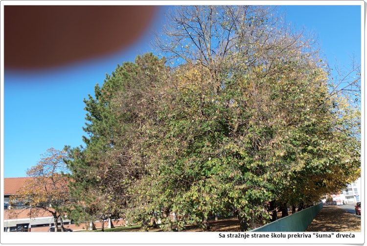 Osim povišenih gredica, na kojima uzgajamo različito povrće, u školskom dvorištu imamo čak 115 drvenastih biljaka. Od njih je 94 listopadnih, 21 vazdazelenih i 6 grmolikih. Školskim dvorištem prevladavaju stabla breze, graba, lipe i hrasta.