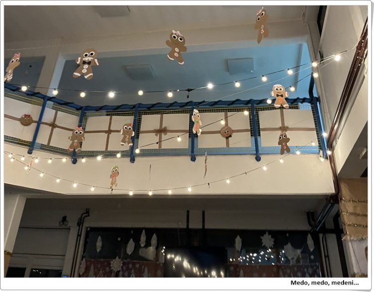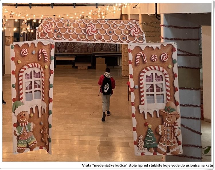 Pred ovogodišnje božićne blagdane naša škola ponovno je čarobno ukrašena, a najviše je ukrašen školski hol. Gotovo svi ukrasi povezani su zajedničkom temom – medenjacima. Ukrašavanje je započeto prvih dana prosinca, a svakim je novih ukrasom stvaran sve veći i veći ugođaj Božića.
