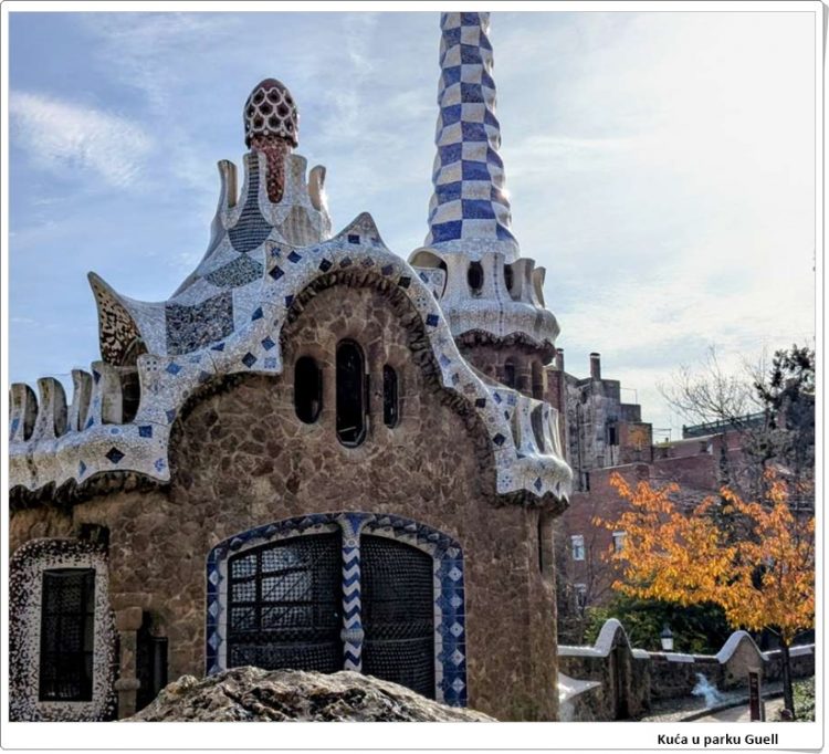 Posjetili smo i Park Guell. Njega je osmislio jedan poznati umjetnik, Gaudi, koji je osmislio i kako će izgledati Sagrada Familia. On je volio sve šareno. Tako je i taj park prepun šarenih mozaika, stuba, palmi. Ondje postoje i dvije šarene kućice u koje nismo ulazili, ali su izvana prezanimljive. Isto šarene. S vrha tog parka postoji pogled na cijelu Barcelonu i more u daljini. Iznimno je bilo lijepo.
