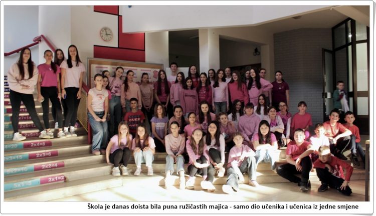 Uđete li ovih dana u našu školu vidjet ćete pano pun ružičastih majica, uz stol u školskome holu na kojemu su flomasteri i ružičasti papiri u obliku majica. Pano je pun lijepih, motivacijskih pisama koja su mogli napisati svi učenici od prvog do osmog razreda, što su mnogi i učinili.